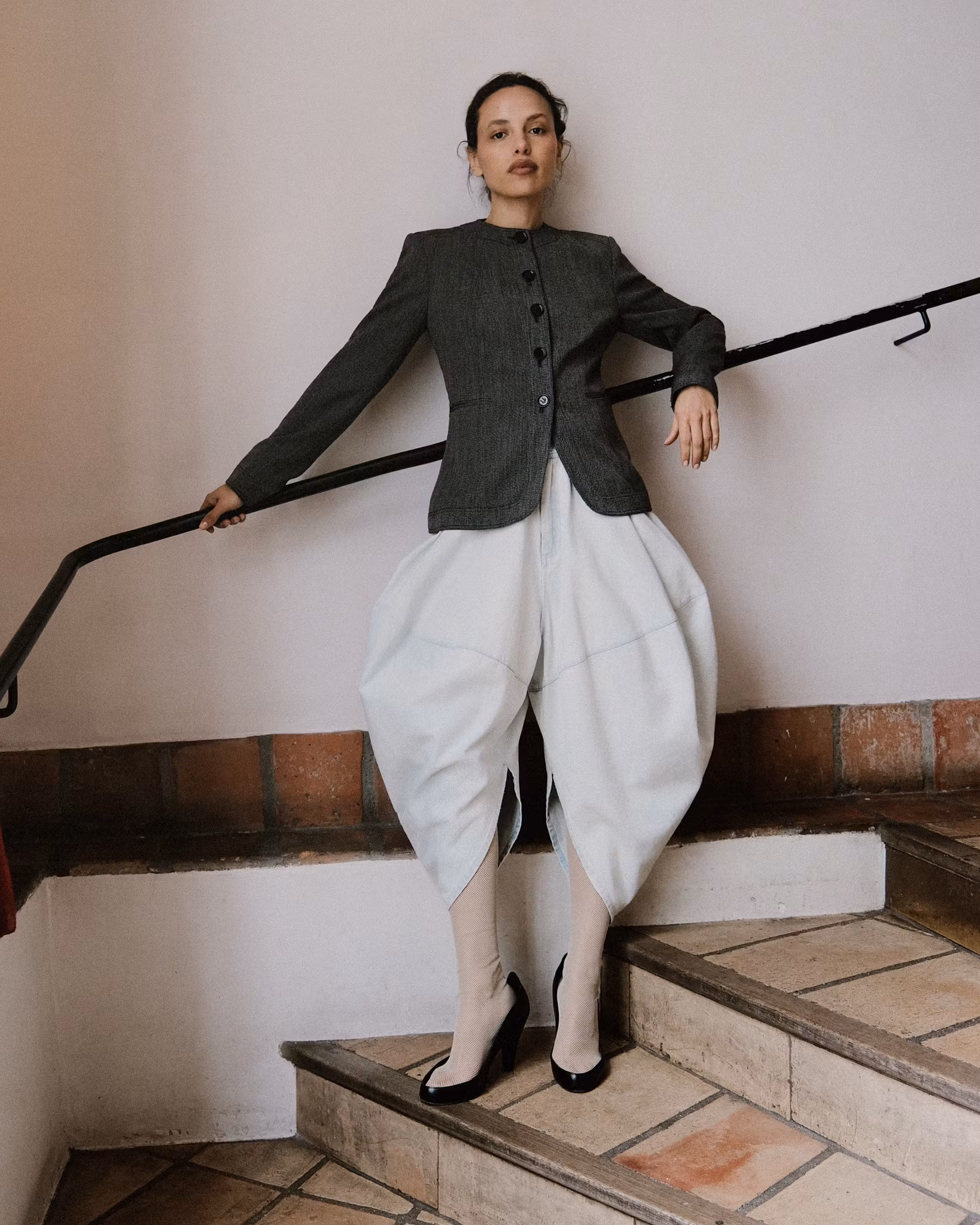 Mare Jeans are crafted from soft cotton denim. Defined by sculptural volume and a distinctive cropped silhouette. The fabric holds its shape and moves with quiet precision, a study in proportion and form